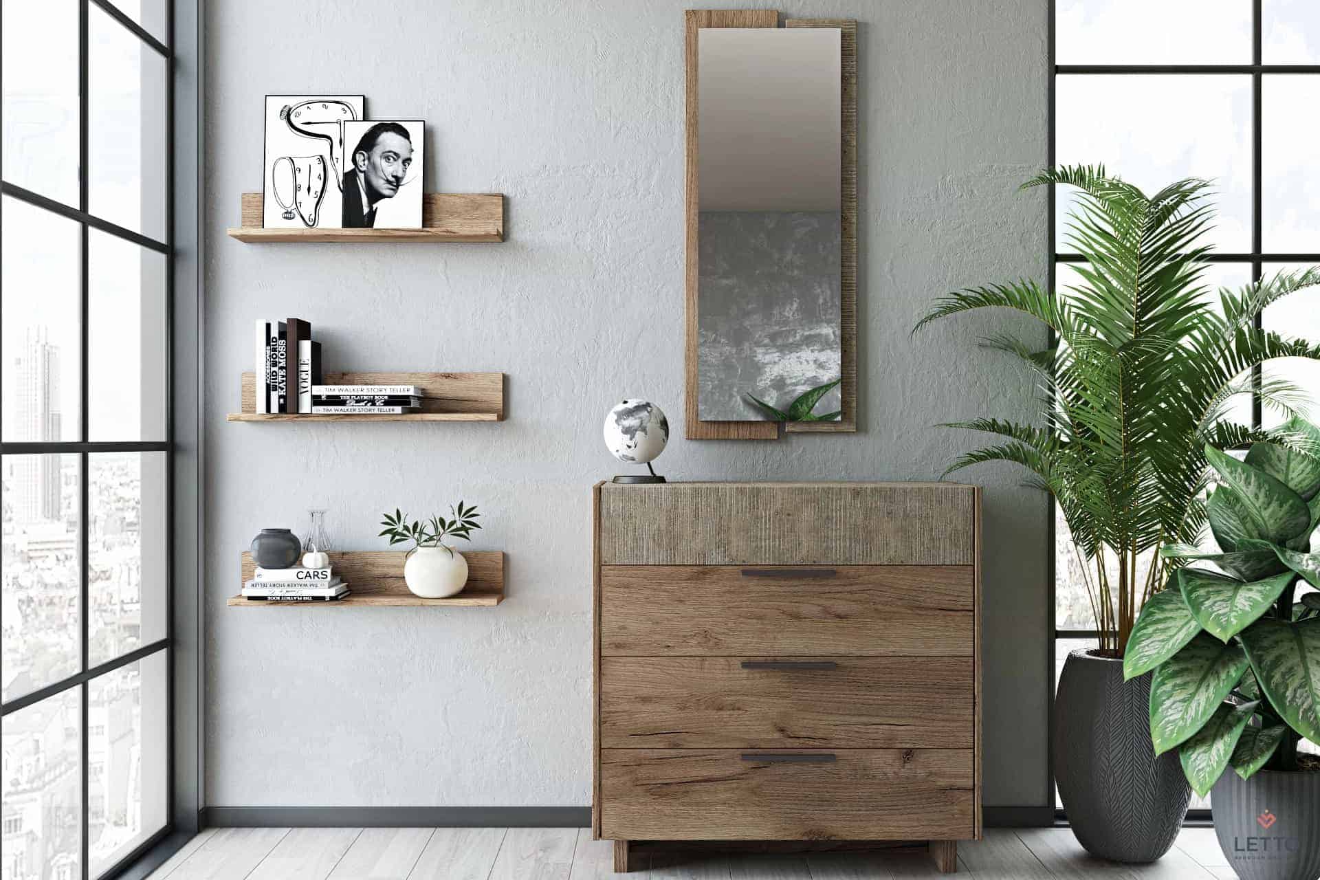 Τα ράφια της Sicilia Collection είναι η ιδανική επιλογή διακόσμησης για το υπνοδωμάτιο αλλά και οποιοδήποτε χώρο του σπιτιού σας. Τα ράφια είναι κατασκευασμένα από τεχνητό καπλαμά, ο οποίος διαθέτει anti-scratch coating για μεγάλη αντοχή κατά την χρόνια χρήση και ιδιαίτερη ευκολία στην καθαριότητα και των πιο δύσκολων λεκέδων.
