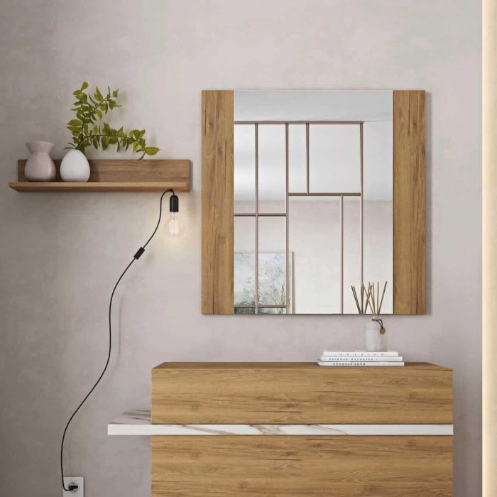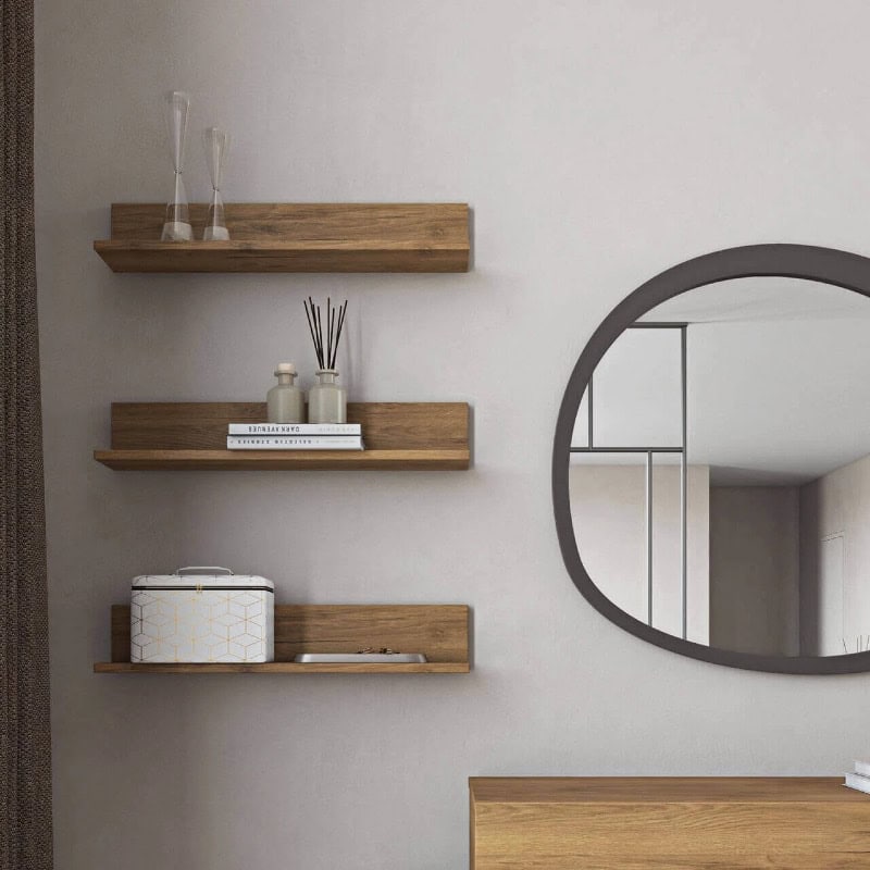 Το ράφι της Tempo collection είναι κατασκευασμένο από τεχνητό καπλαμά Lefkas oak (m.28) με το χαρακτηριστικό φυσικό χρώμα της οξιάς. Το υλικό που χρησιμοποιείται έχει anti-scratch coating για την αποφυγή χτυπημάτων και τον εύκολο καθαρισμό των πιο δύσκολων λεκέδων. Συνδυάζονται όμορφα με τα κομοδίνα, τις συρταριέρες και τους καθρέπτες των συλλογών Tempo & Odd. Με την προσθήκη κρεμαστού φωτιστικού υφασμάτινου καλωδίου, αντικαθιστά εύκολα το τυπικό αλλά χρήσιμο πορτατίφ. Επίσης αποτελούν ιδανική επιλογή για να συμπληρώσετε και να ανανεώσετε το χωλ, το living room ή οποιοδήποτε χώρο του σπιτιού σας επιλέξετε.