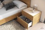 Το κομοδίνο διαθέτει δύο συρτάρια αποθήκευσης ιδίου μεγέθους , το εσωτερικό των οποίων είναι κατασκευασμένο από ανάγλυφη μελαμίνη σε linen beige χρώμα. Οι μηχανισμοί των συρταριών είναι ρόδας Teflon, ιταλικής προέλευσης για άριστη λειτουργία σε βάθος χρόνου και ιδιαίτερη αντοχή στο βάρος, ενώ πολύ εύκολα μπορούν να τοποθετηθούν μηχανισμοί soft close για αθόρυβη λειτουργία.