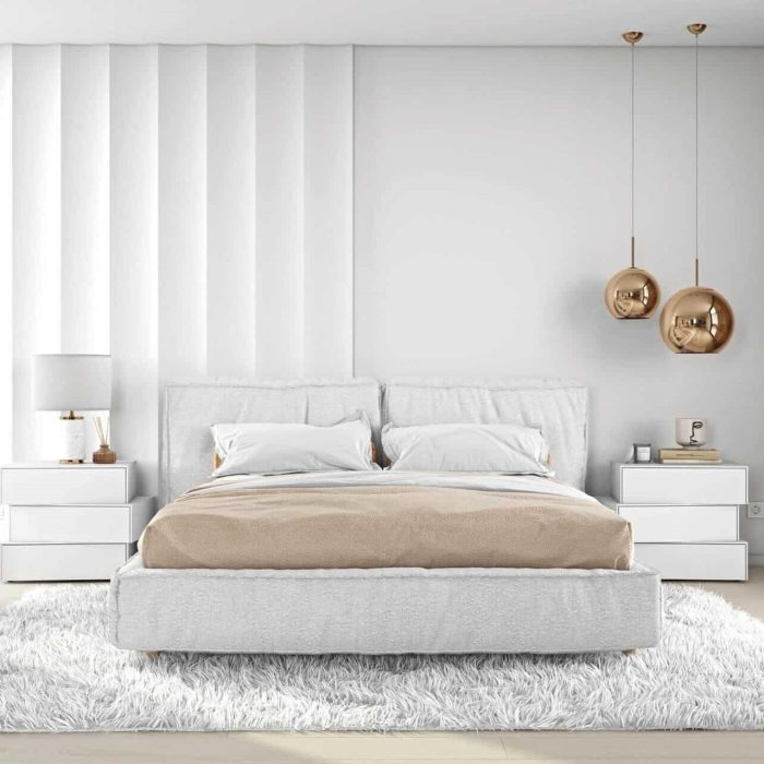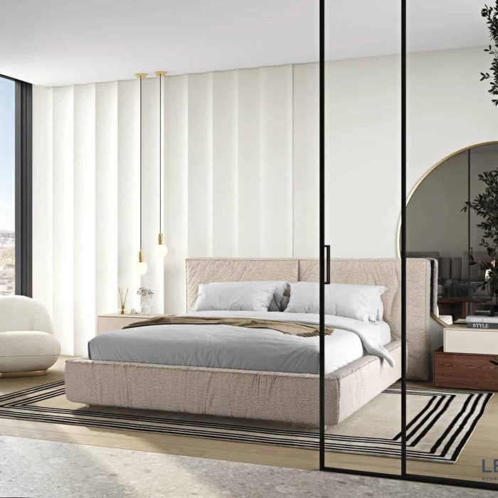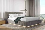Κρεβάτι Luxx με ξύλινα πόδια και την ίδια όψη μπροστά-πίσω. Δυνατότητα προσθήκης φωτισμού Led περιμετρικά στη βάση του κρεβατιού με ή χωρίς ανιχνευτή κίνησης και μηχανισμού ανύψωσης στρώματος για επιπλέον αποθηκευτικό χώρο – Διαθέσιμο σε ύφασμα επιλογής. Μπορεί να τοποθετηθεί και στο κέντρο του δωματίου!