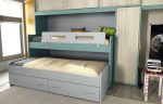 Slogan for Volo C26: “The sliding overhead wardrobe with L 210 cm housing space allows the integration of the multifunction beds.”