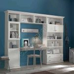- Σύνθεση βιβλιοθήκης με τέσσερις πόρτες, δύο συρτάρια, οκτώ ράφια, γραφείο και καρέκλα συνολικού μήκους 262cm