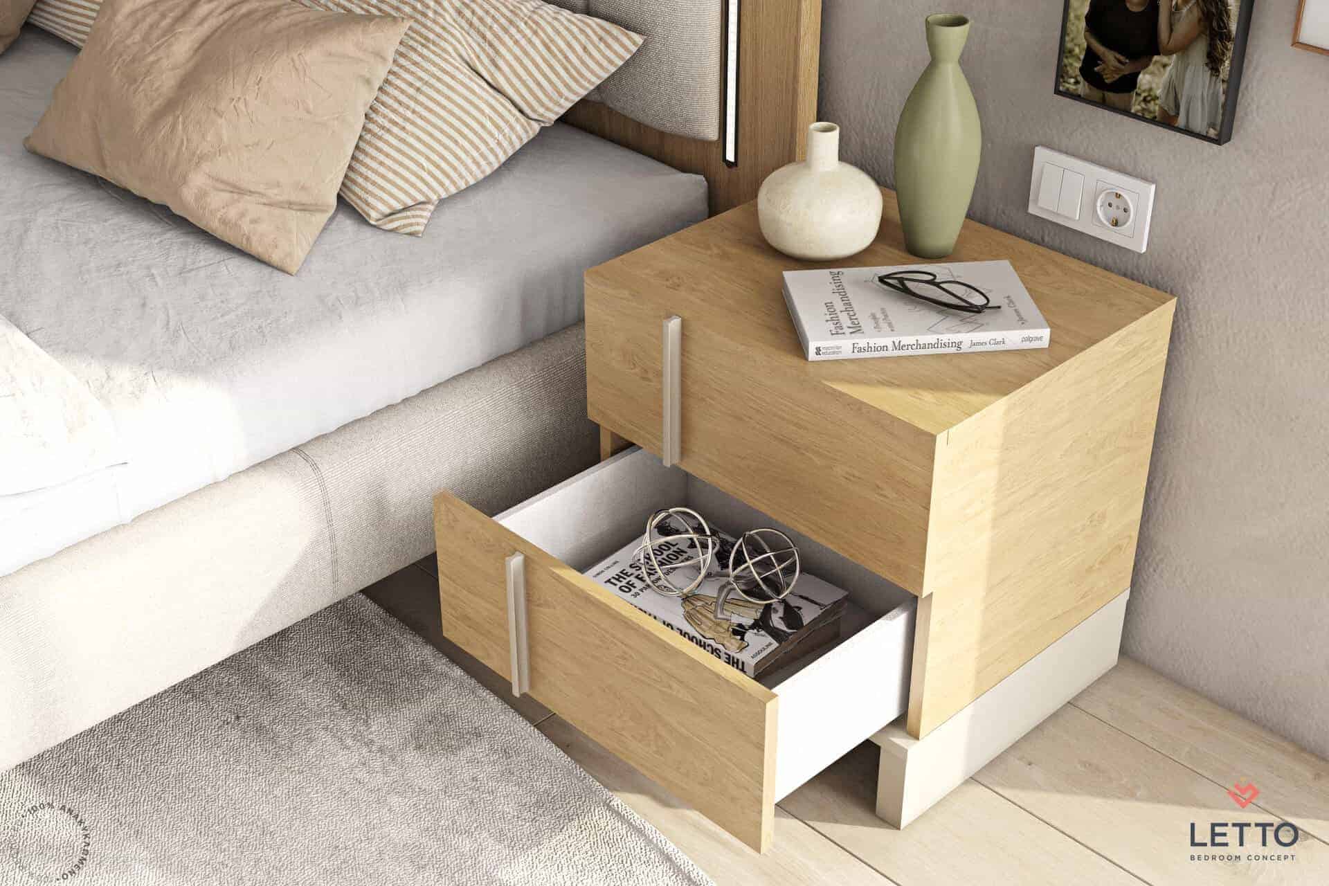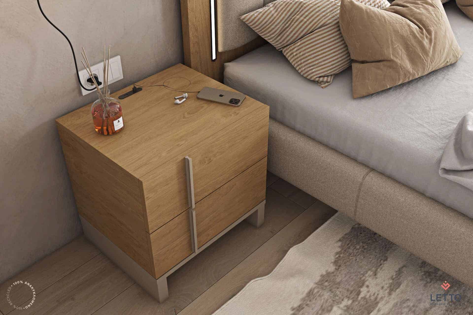 Αν και το κομοδίνο Mod μπορεί να συνοδεύσει το αγαπημένο σας κρεβάτι, ταιριάζει απόλυτα με τα κρεβάτια, συρταριέρες, καθρέπτες, γραφεία και βιβλιοθήκη της αντίστοιχης σειράς, ενώ δένει υπέροχο με ένα από τα ντυμένα κρεβάτια της Letto Fab, Luxx, Line & Nabuk.