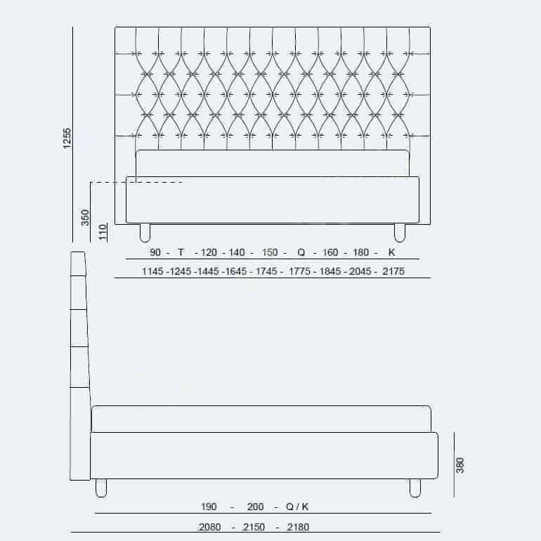 - Τρεις κατηγορίες υφασμάτων (A, B, C) και δύο κατηγορίες δερμάτων (Ap, P) με πολλαπλές επιλογές χρωμάτων για την επένδυση του κρεβατιού