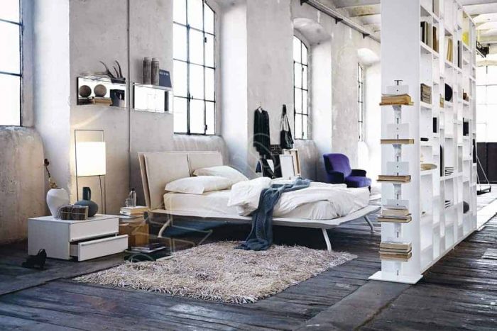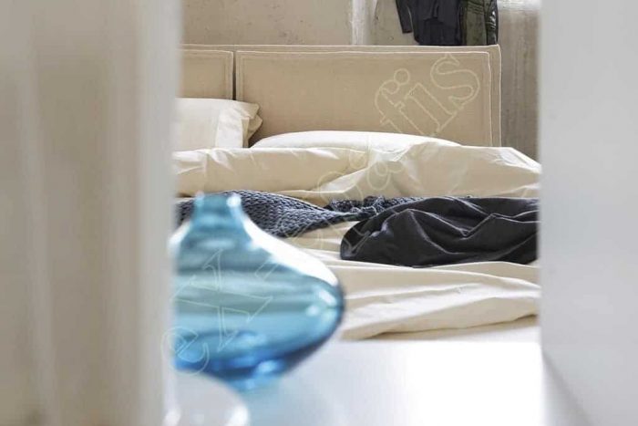 Το κρεβάτι Kenny από τον Ιταλικό οίκο Noctis. Οι αδιάσπαστες συμμετρίες μιας εκλεπτυσμένης σχεδίασης σκιαγραφούν ένα σχέδιο που μοιάζει να επιπλέει στον αέρα.