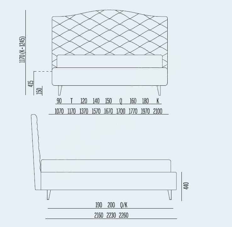 Δείτε τις Εξωτερικές Διαστάσεις για το Κρεβάτι Lyle Capitonne: