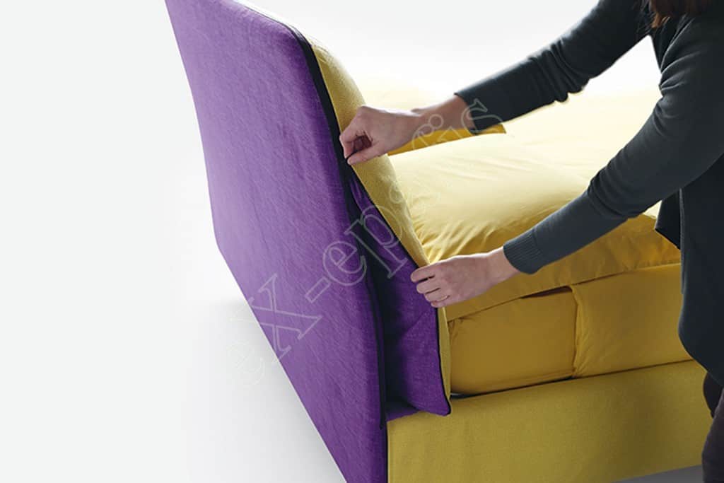 Το κρεβάτι Paco φέρνει την μεγάλη είδηση: κάλυμμα διπλής όψης! Στο κρεβάτι Paco είναι εξαιρετικά εύκολο να αλλάξετε την εμφάνιση του κρεβατιού σας. Πρέπει απλώς να ανοίξετε το φερμουάρ της επένδυσης στο κεφαλάρι και να αντιστρέψετε το μαξιλάρι. Ακόμη και το κάλυμμα από το πλαίσιο του κρεβατιού είναι αναστρέψιμο. Κάθε ζεύγος χρωμάτων πρέπει να είναι από το ίδιο δειγματολόγιο.