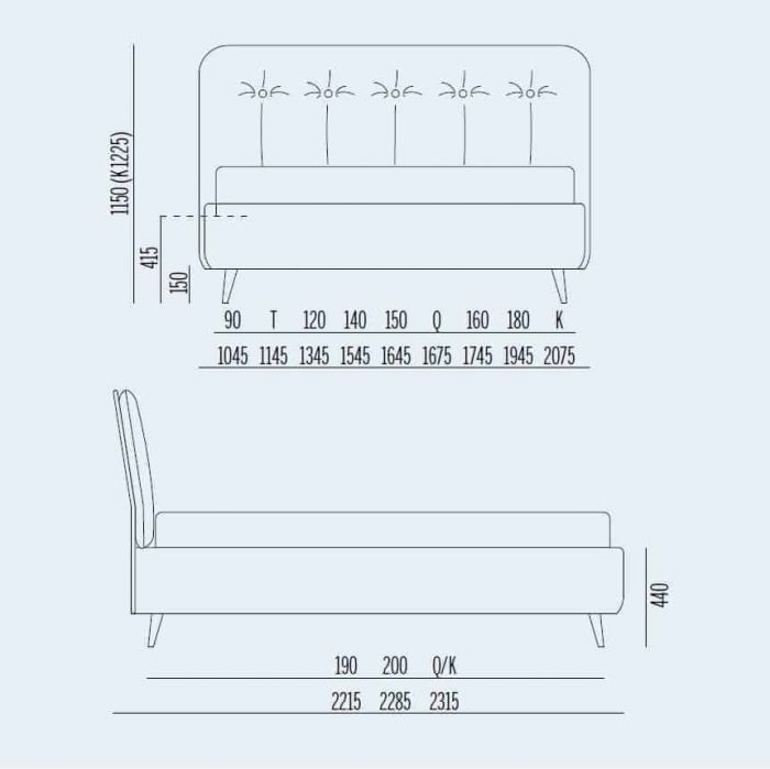 - Τρεις κατηγορίες υφασμάτων (A, B, C) με πολλαπλές επιλογές χρωμάτων για την επένδυση του κρεβατιού