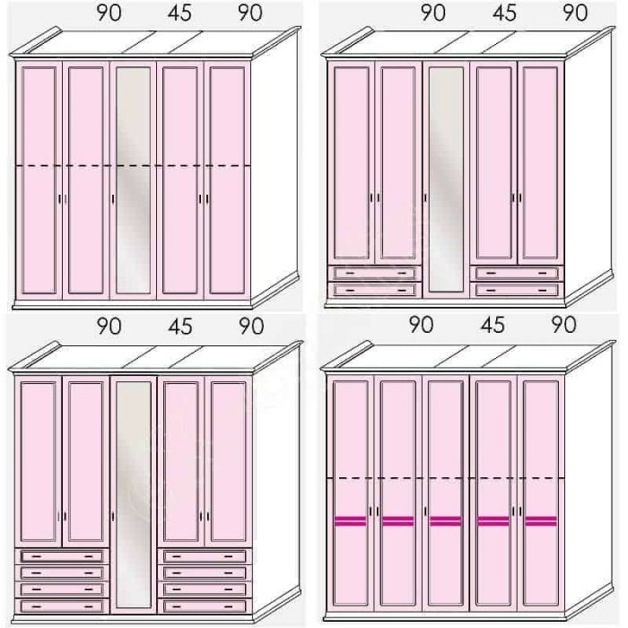 Ντουλάπα 5φυλλη επιπλέον επιλογές με έξτρα χρέωση: