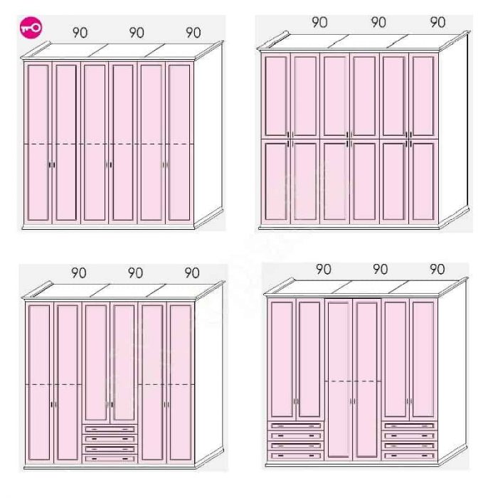 Ντουλάπα 6φυλλη επιπλέον επιλογές με έξτρα χρέωση: