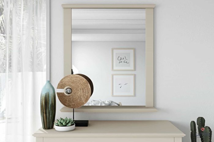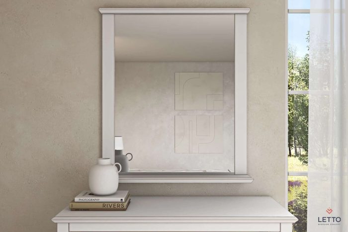 Ο καθρέπτης Isavella είναι το ιδανικό κομμάτι για να ολοκληρώσετε το styling του υπνοδωματίου σας και οποιουδήποτε χώρου επιλέξετε να τον τοποθετήσετε. Κατασκευασμένος από ξύλο mdf, μπορεί να βαφεί σε ένα από τα προτεινόμενα χρώματα λάκας ώστε να ταιριάξει ιδανικά με τον προσωπικό σας χώρο. Μπορείτε επίσης να επιλέξετε την ειδική επεξεργασία παλαίωσης Country Effect για ακόμη πιο ιδιαίτερο αποτέλεσμα.