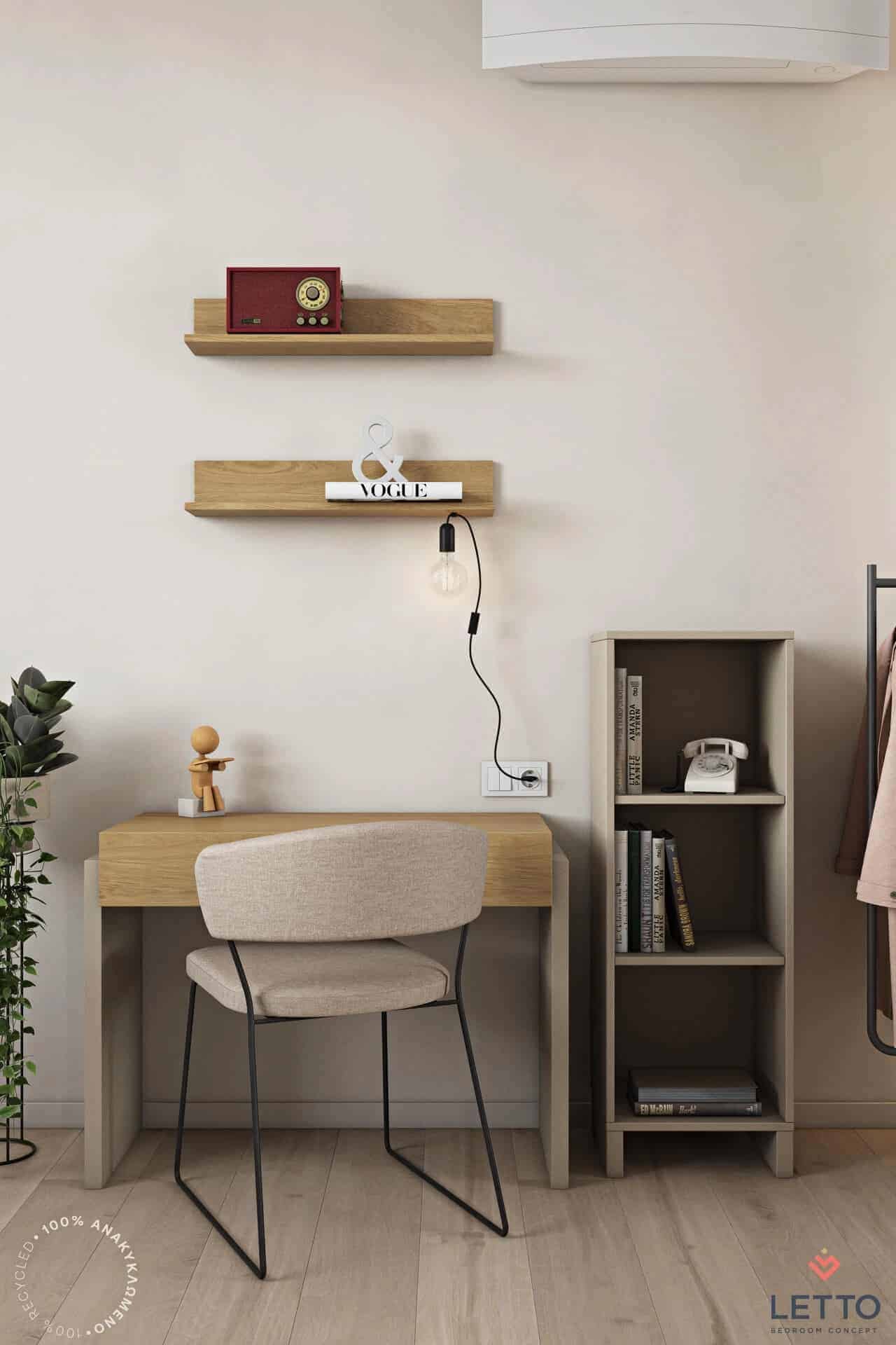 κρεβάτι Mod, για εύκολο καθάρισμα, τα κομοδίνα των 40εκ, για εξοικονόμηση χώρου, τη χρήσιμη συρταριέρα με τα 4 συρτάρια τοποθετημένη δίπλα στο επιδαπέδιο ντουλαπάκι με καθρέπτη Mod, ενώ στον απέναντι τοίχο μπορείτε να τοποθετήστε τη μπαγκαζιέρα. Και όσον αφορά το κομψό και χρήσιμο γραφείο καθώς και την επιδαπέδια βιβλιοθήκη, ανάλογα με τον χώρο μπορούν να τοποθετηθούν σε μια γωνιά στο σαλόνι ή μέσα στο υπνοδωμάτιο αφού το γραφείο είναι διαθέσιμο σε 2 διαστάσεις 70 & 100 εκ. για να χωράει παντού! Απόλυτα χρηστικά έπιπλα με άνετους αποθηκευτικούς χώρους, σχεδιασμένα με στυλ και φινέτσα!