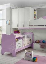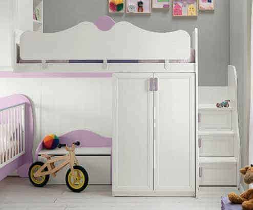 - Σύνθεση κουκέτας με τέσσερις πόρτες, σκάλα με τρεις πόρτες, προστατευτικό κάλυμμα, ντουλάπα με μία πόρτα, δύο ράφια και τρία συρτάρια συνολικού μήκους 322cm