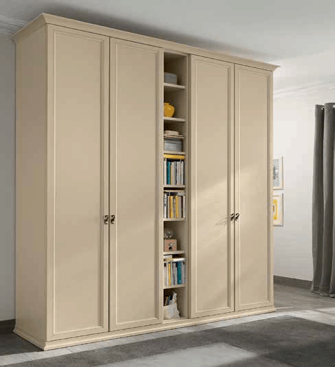 - Σύνθεση ντουλάπας με τέσσερις πόρτες και βιβλιοθήκη στο κέντρο (212×60.3×267.7cm ύψος)
