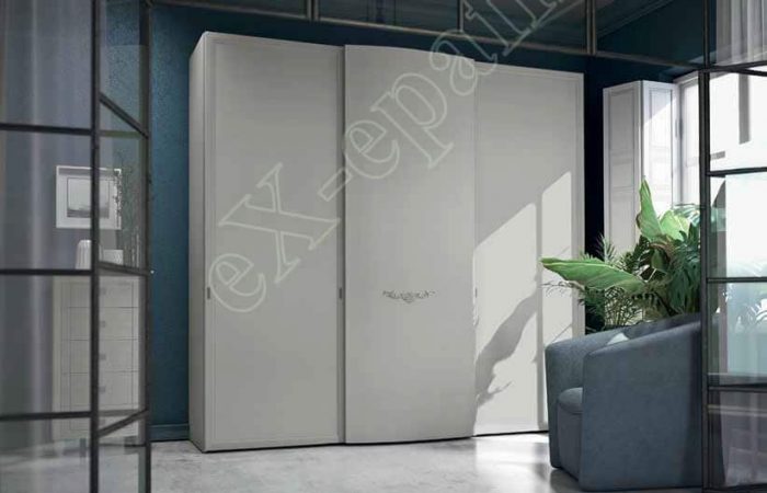 - Ντουλάπα με τρεις συρόμενες πόρτες εκ των οποίων η μεσαία είναι καμπυλωτή (267.5x68x262.7cm ύψος)