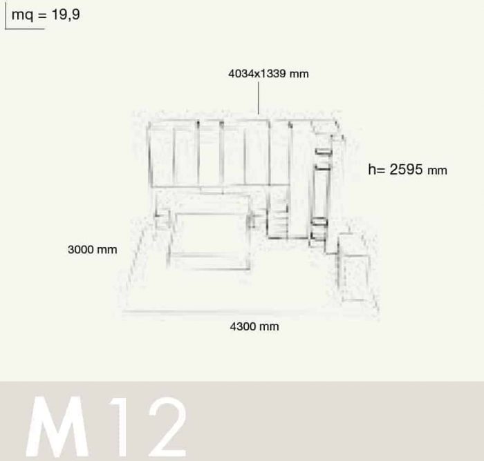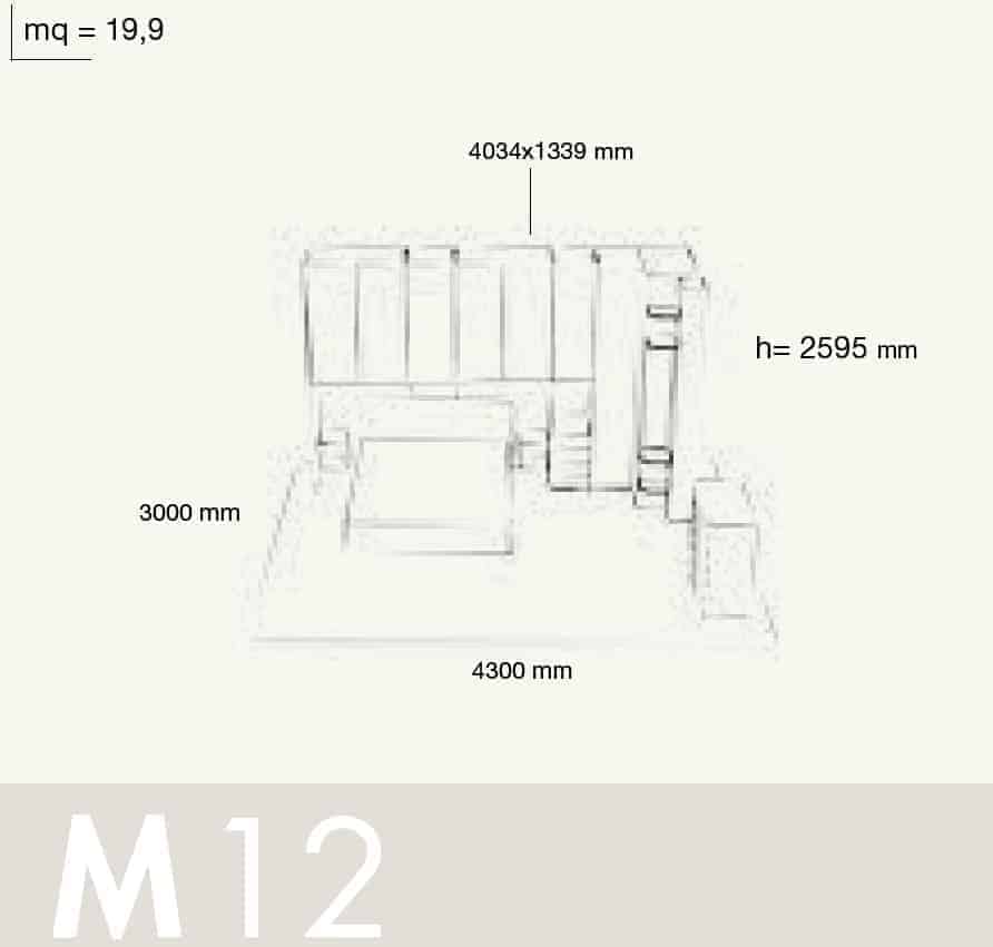 Slogan for M12: Rationalisation of the spaces for the master bedroom with the L. 256 cm overhead wardrobe.