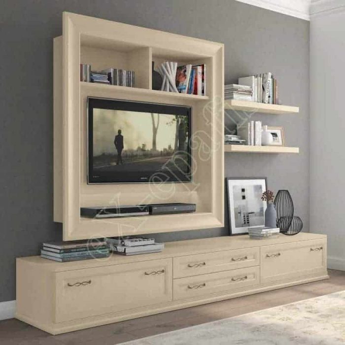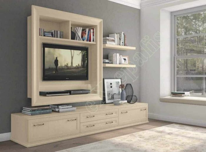 - Σύνθεση βιβλιοθήκης με χώρο για τηλεόραση συνολικού μήκους 143cm
