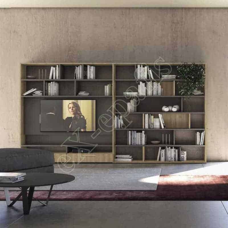 - Σύνθεση βιβλιοθήκης με δύο συρτάρια, χώρο για τηλεόραση και ράφια (362.5×33.3×195.3cm ύψος)
