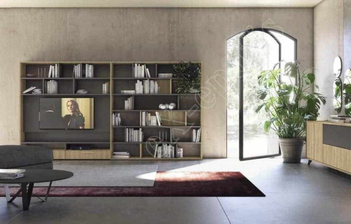 Σύνθετο για το σαλόνι κατάλληλο για τοποθέτηση τηλεόρασης αλλά και ταυτόχρονα μια πρακτική βιβλιοθήκη. Μπορείτε να τοποθετήσετε όμορφα στολίδια και άλλα διακοσμητικά ώστε δημιουργήστε έναν υπέροχο φιλόξενο χώρο για το σαλόνι σας.
