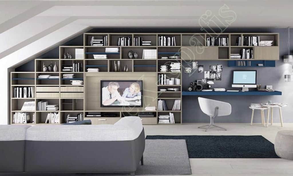 - Σύνθεση βιβλιοθήκης, γραφείο και χώρος για τηλεόραση (662.5×33.3×227.3cm ύψος)