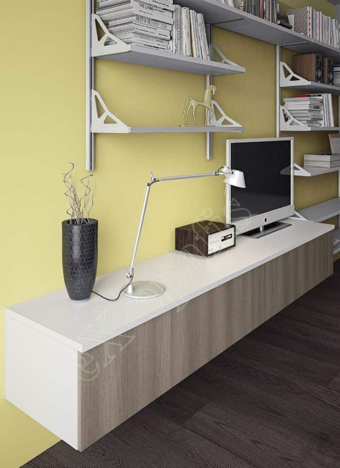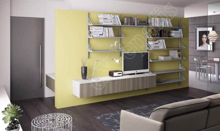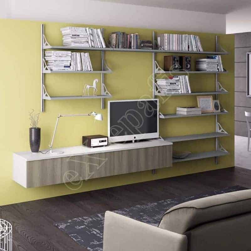 - Σύνθεση βιβλιοθήκης με σκελετό αλουμινίου και βάση τηλεόρασης με ντουλάπια (τύπου push-pull)