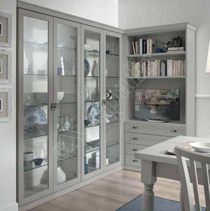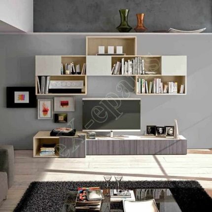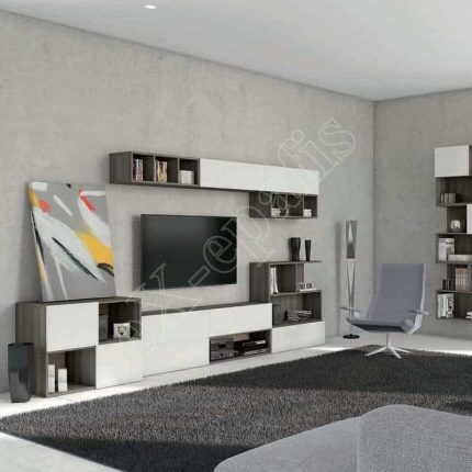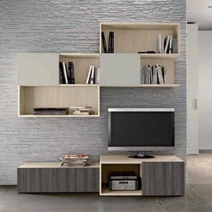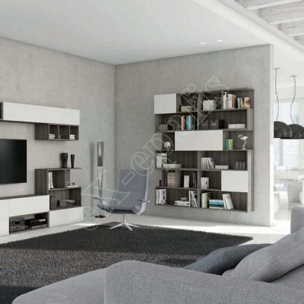 - Σύνθεση βιβλιοθήκης με ντουλάπια (τύπου push-pull), συρτάρια, χώρος για τηλεόραση και ράφι