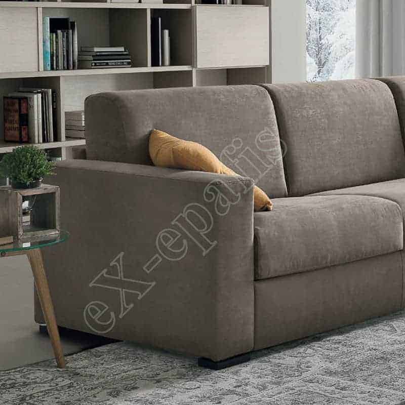 Η αναγραφόμενη τιμή (1.260€) είναι ενδεικτική και αφορά καναπέ με μπράτσα που μετατρέπετε σε μονό κρεβάτι με επένδυση υφάσματος από την κατηγορία Cat 1.